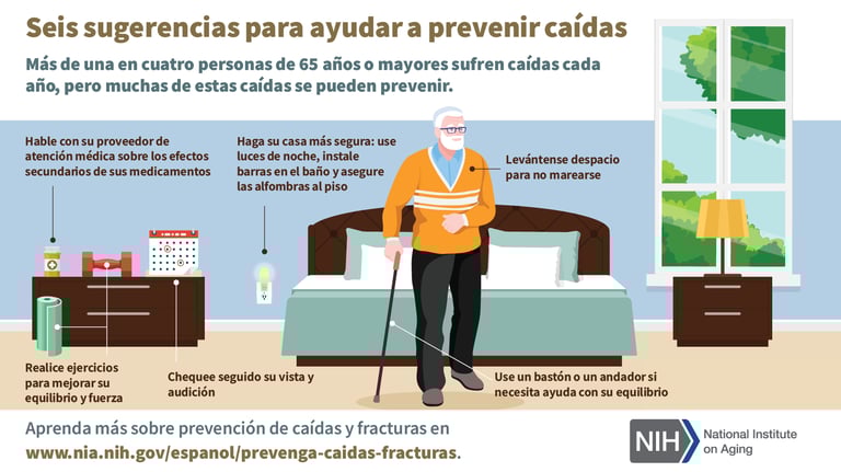 Revisar periódicamente los medicamentos con un médico, ya que algunos aumentan el riesgo de caídas (sedantes, ansiolíticos, antihipertensivos).
